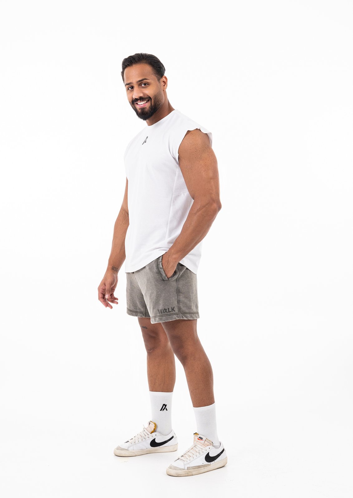 Refresh your athletic and casual wardrobe with the Walk Men’s Sleeveless T-Shirt, featuring bold chest and back prints accented with a breathable dotted mesh design. Made from a cotton-rich blend with recycled fibers, this sleeveless tee is built for comfort, performance, and environmental responsibility.